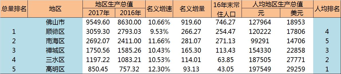 2017年佛山市经济运行简报,佛山各县市区GDP排名