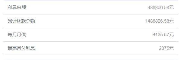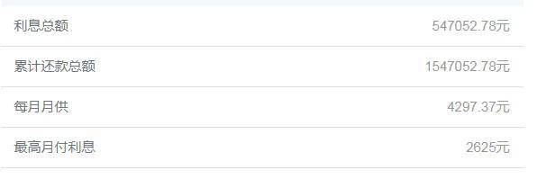 如果执行3.15%利率,商业贷款100万额度,30年分期,每月月供约4297.37元,利息总额约54.7万。