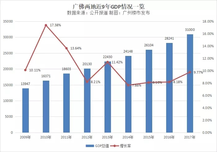 2017年两地GDP总和超过了3万亿,9.77%的增速,创近4年新高。
