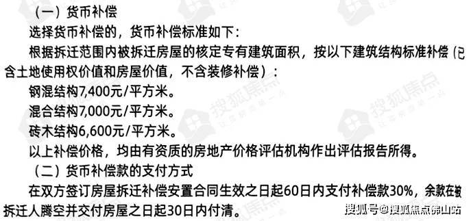 如果选择货币补偿,补偿标准为:钢混结构7400元/㎡;混合结构7000元/㎡;砖木结构6600元/㎡ 。