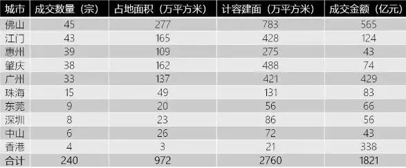 大湾区各城土地成交排行