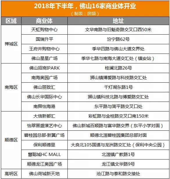 下半年,佛山又有16家商业体开业