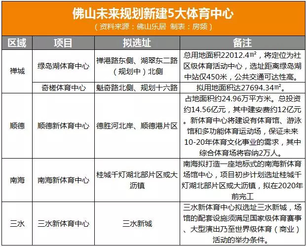 佛山将新建5大体育中心