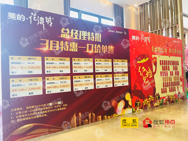 动态:美的花湾城位于顺德陈村花卉世界旁,在售7/8/9/10/13/14座,10座楼高29层,13/14座楼高33层,均为2梯4户,面积涵盖94/108/120/140平三四房,单合同,首付三成。
