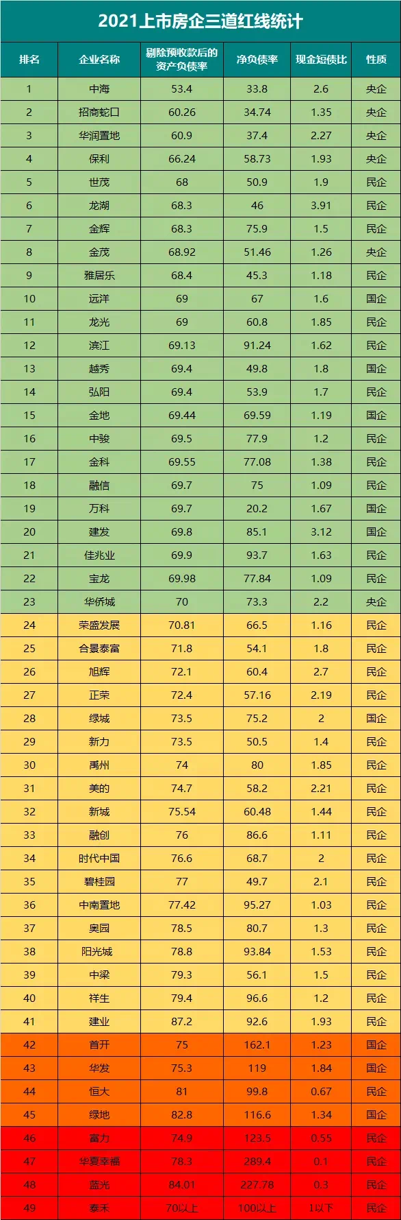 专项账户里的“预售款”,本应是保障项目如期建设的最后一道防线,却被“夹紧尾巴”过日子的房企盯上,为了动用款项,钻监管漏洞空子,上演资金乾坤大挪移,置买房者于风险境地。 如此一来,一旦东窗事发,买家必定举起维权大旗,再要追溯资金去向,讨回大笔预售款,那真是难上加难。 如何在保障购房者权益与“纾困”资金困难房企之间取得平衡,是一门考验监管部门的技术活,很明显,佛山还有很长的路要走。 眼下针对购房者,在缴纳预售款前,一定要先核对资金监管账户是否真实有效,如因个人原因未仔细核对将预售款打入非资金监管账户的,权益将无法得到保障。 此外,购房者在置业期间,认准以下三点,尽可能避开存在停工烂尾风险的项目。 1、参考房企三道红线。在今年上半年房企统计中,49家房企有4家三条红线全部踩中,绿档开发商多半为央企、国企。