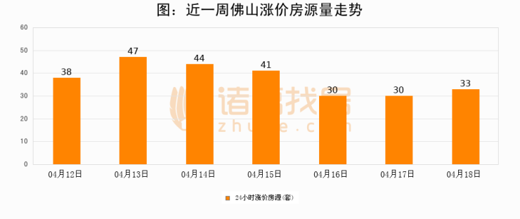 根据诸葛找房数据显示,佛山24小时涨价房源量为33套,较04月17日增加3套,环比上涨10%。与此同时,涨价房源占比小幅扩大,业主信心有所提升。