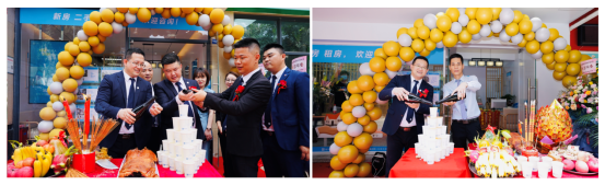 最后,嘉宾共同为中铁店、怡翠花园店的盛大开业倒上香槟酒塔,寓意着示范店未来将更上一层楼。