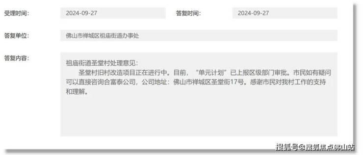 日前,有网友禅城区互动平台上,咨询圣堂村旧改的最新进展。