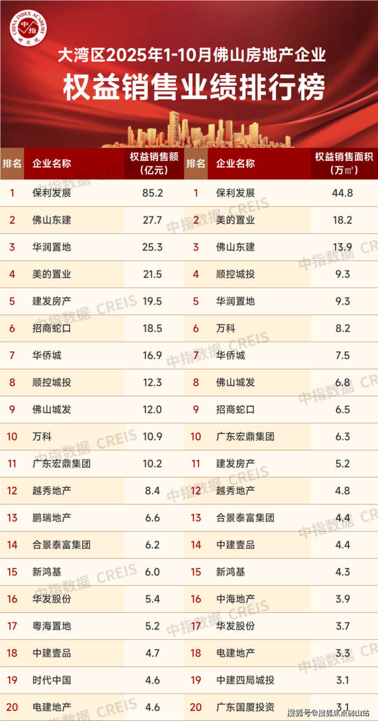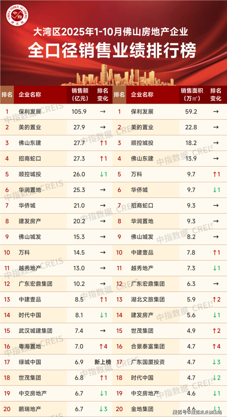 大湾区2025年1-10月佛山房地产企业销售业绩排行榜出炉