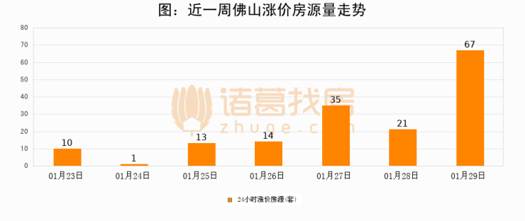 根据诸葛找房数据显示,佛山24小时涨价房源量为67套,较01月28日增加46套,环比上涨219%。与此同时,涨价房源占比小幅扩大,业主信心有所提升。