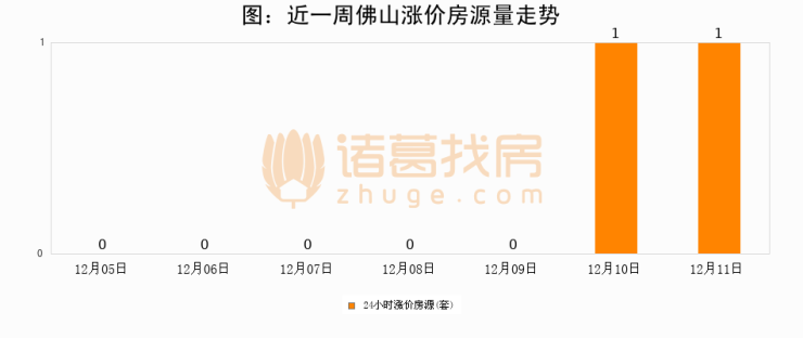 根据诸葛找房数据显示,佛山24小时涨价房源量为1套,较12月10日持平。