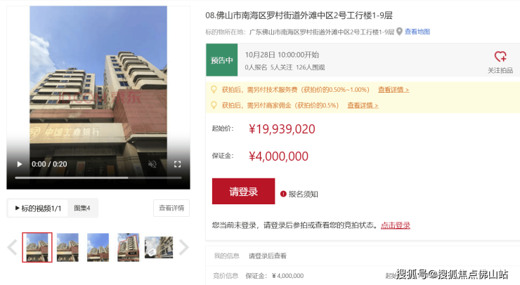 京东法拍平台显示,佛山市南海区罗村街道外滩中区2号工行楼1-9层,将于10月28日进行网拍,起拍价1993.902万。法拍资料显示,该大楼建于1995年,大楼占地仅630.7㎡,土地用途为办公楼兼住宅,总建面…