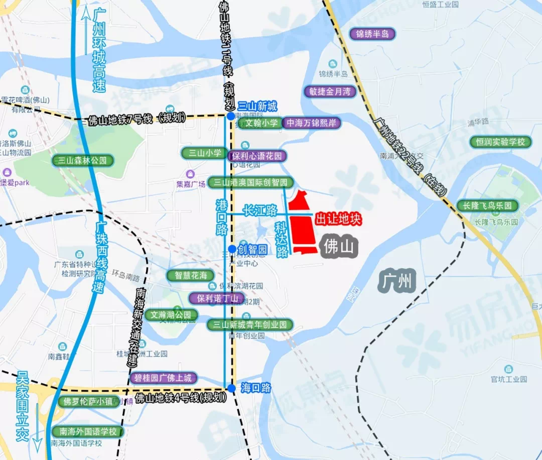 从地图上看,地块位于南海区桂城街三山科丰路以东,毗邻长江路,地处广佛交界位置,与广州的长隆飞鸟乐园直线距离不过1公里,周边已建有保利诺丁山、中海万锦熙岸、保利西雅图等成熟楼盘。