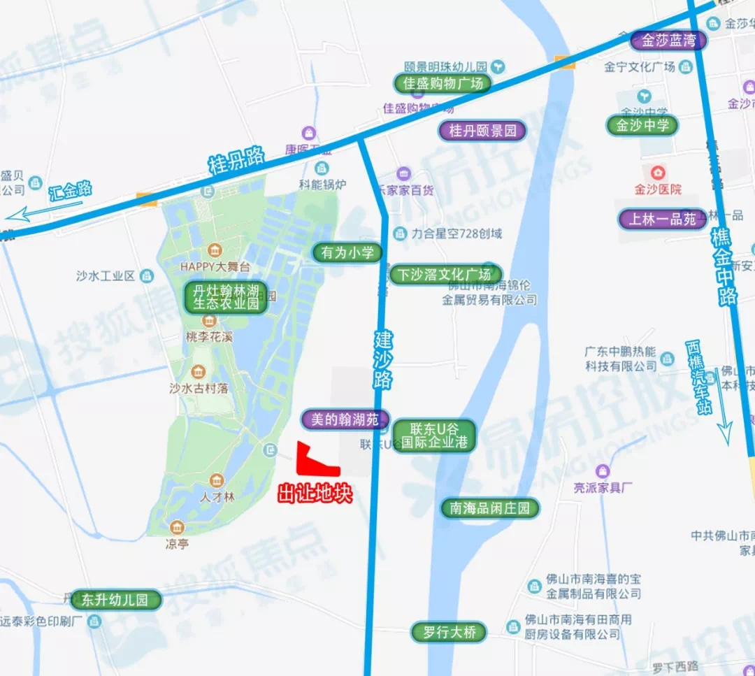 从地图上看,该地块位于金智二路北侧地段,地处大金智地核心区位,东临美的翰湖苑,西侧紧挨翰林湖农业公园。地块与联东U谷国际企业港隔路相望,周边有有为小学、下沙滘文化广场等配套。地块东侧沿建沙路可接驳桂丹路,快速通往南海中心及广州。