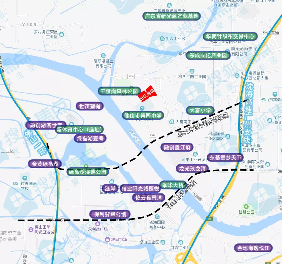从地图上看,地块位于禅城张槎王借岗森林公园片区,西临东平河,南靠佛山四中。据较新片区规控显示,地块附近有地铁2号线、地铁4号线以及广佛环线三条轨道交通,区位优势突出。