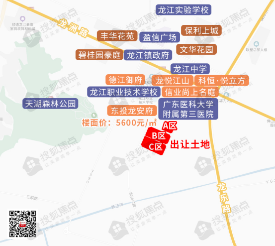 值得一提的是,本宗地为龙江年内挂牌的第二宗宅地,西侧即为江西东投集团佛山首子,于7月13日以底价5600元/㎡成交,备案名为东投龙安府。