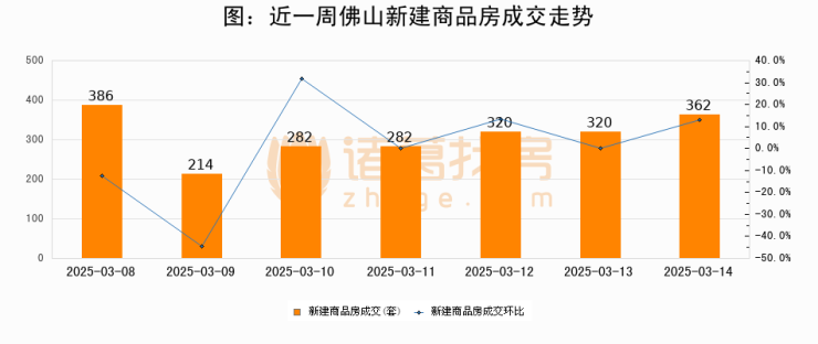 【佛山成交日报】03月14日新房成交362套、二手房574套;涨价房源1套