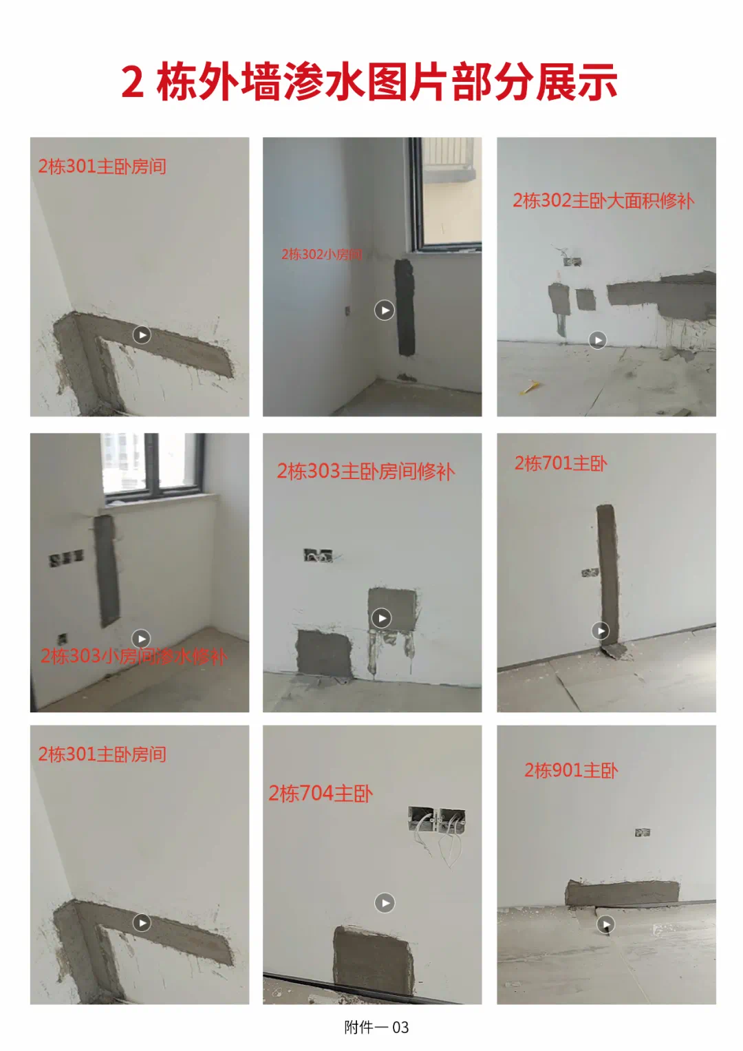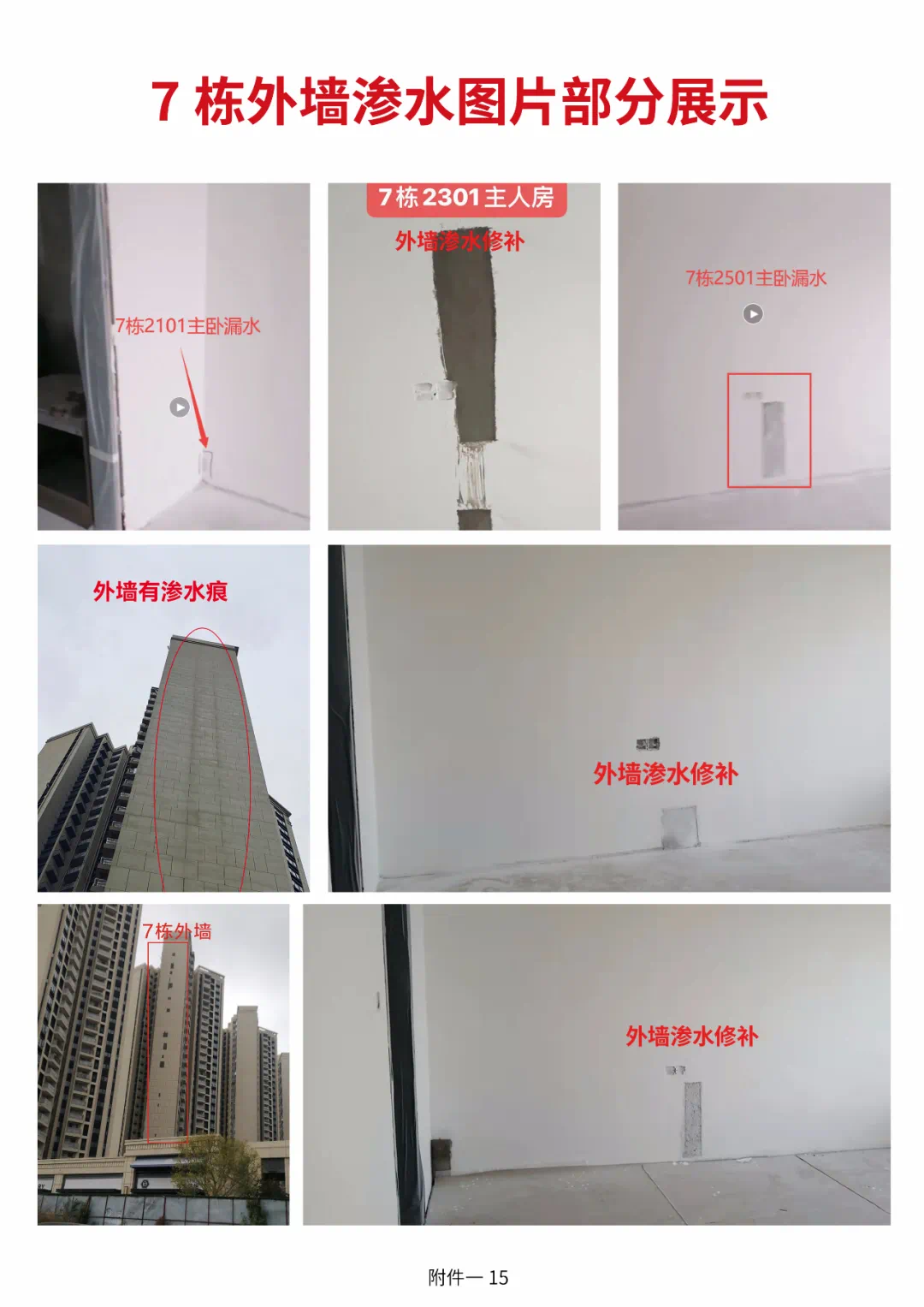 从粉丝提供的图片资料可以发现,小区2-8栋皆有不同层面的渗水问题。