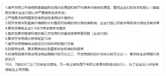 对于业主而言,要保持理性分析,提出合理诉求,积极寻求沟通,切忌冲动,把受害方立于被动局面,要知道维权是把双刃剑,也要考虑房子的二手市场。