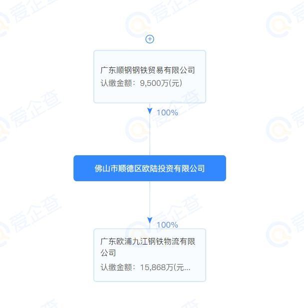 资料显示,拍卖标的权利人为佛山市顺德区欧陆投资有限公司,其背后的股东是广东顺钢钢铁贸易有限公司。