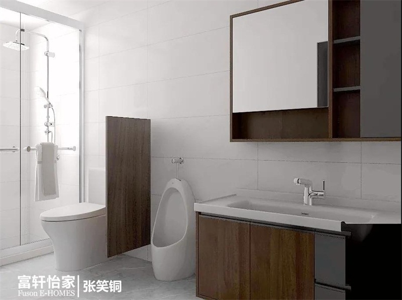 △由于全屋只有一个卫生间,为了保持清洁卫生,所以同时做小便池与马桶的设计;干湿分离的设计,确保如厕安全。实际上,中式风隐藏着传统东方古典神韵的优雅与高贵,从某种意义上讲,它不仅是家具,更是中国传统家庭对古典文化的传承。