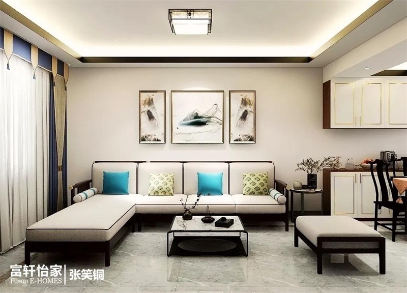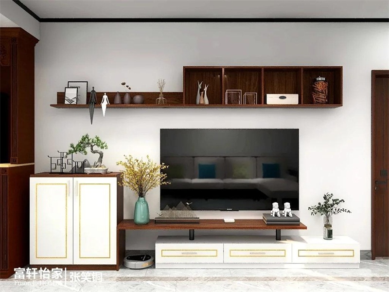 富轩怡家装修指南:94㎡中式风,胡桃木与白色搭配,眼前一亮!