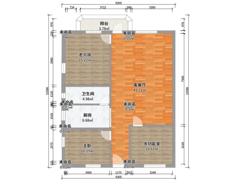 从户型图上看,全屋户型方正实用,空间利用率高;门厅有走道过渡,可适当增加空间功能;客厅卧室一体阳台,卧室采光佳,适合老人居住。