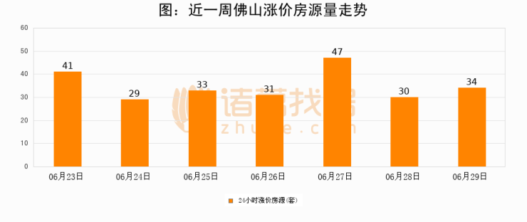 根据诸葛找房数据显示,佛山24小时涨价房源量为34套,较06月28日增加4套,环比上涨13.3%。与此同时,涨价房源占比小幅扩大,业主信心有所提升。