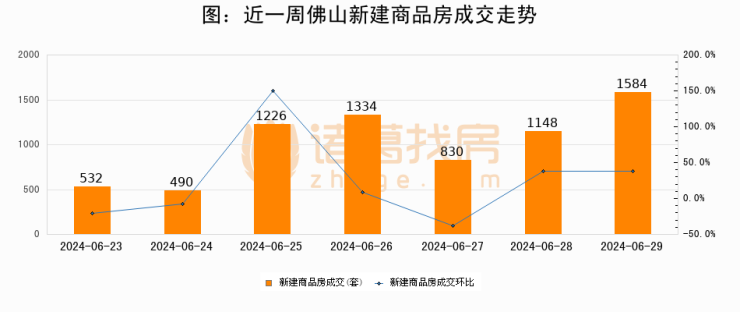 【佛山成交日报】06月29日新房成交1584套、二手房428套;涨价房源34套