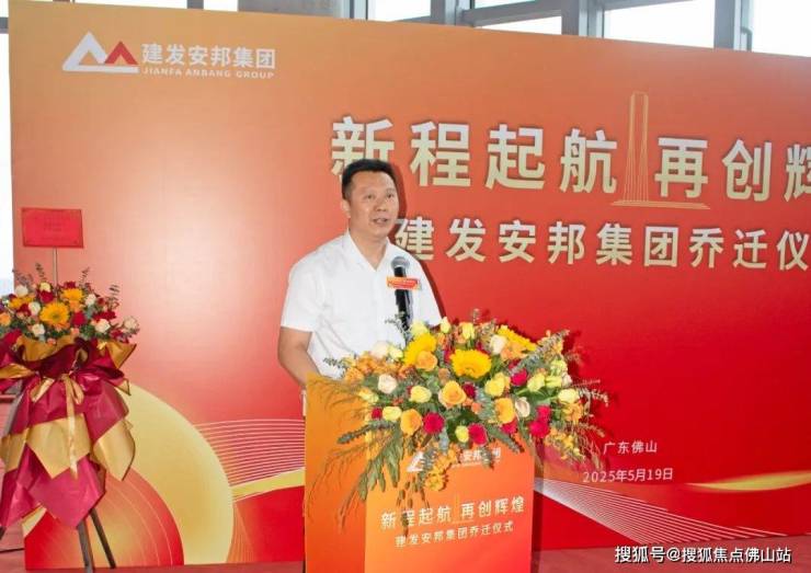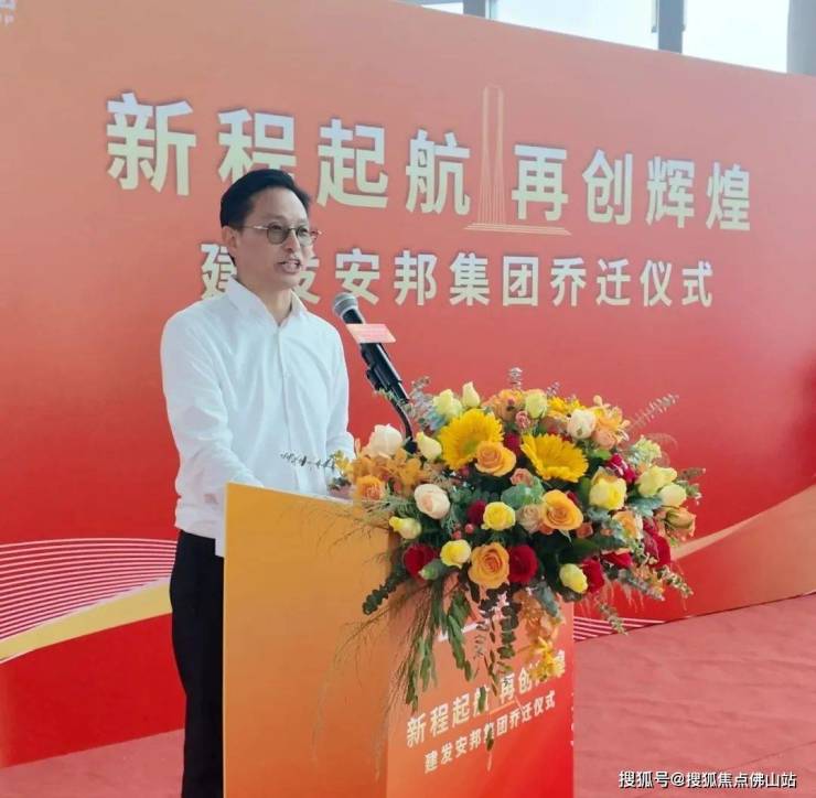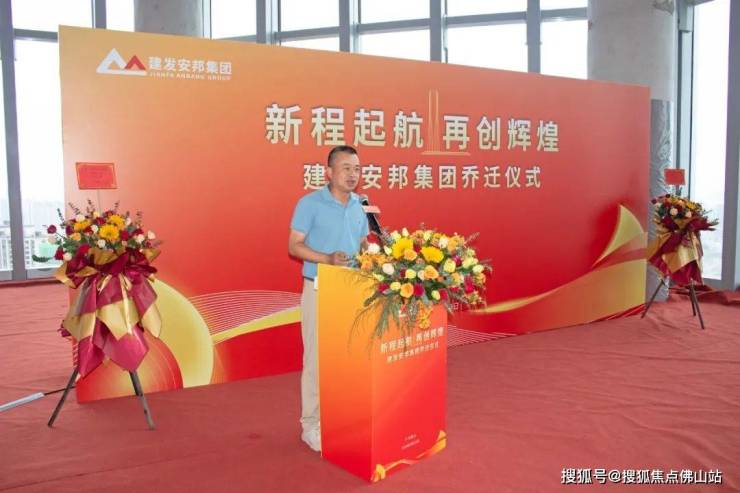 佛山建发智城党总支书记、董事长蔡宇随后上台致辞。他代表国资股东方建发智城公司,向建发安邦乔迁仪式表示热烈的祝贺。