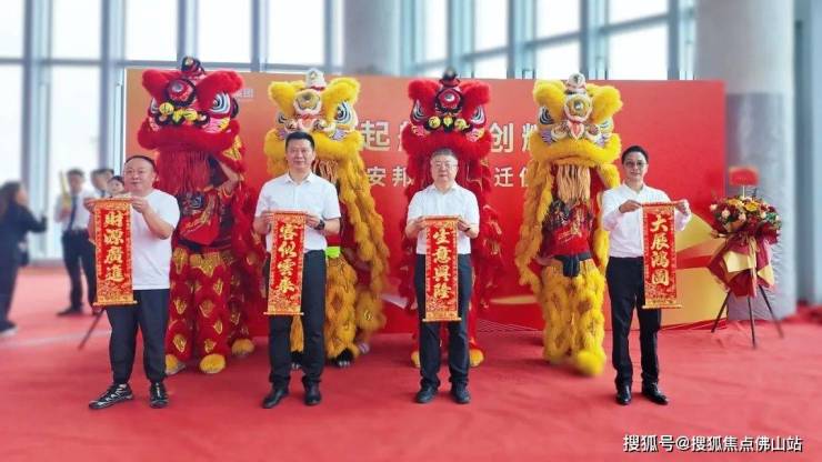 乔迁仪式上,与会领导共同为祥狮点睛、剪彩,寓意集团发展必将气势如虹,激励着全体员工协心戮力,向新而行。图:点睛仪式