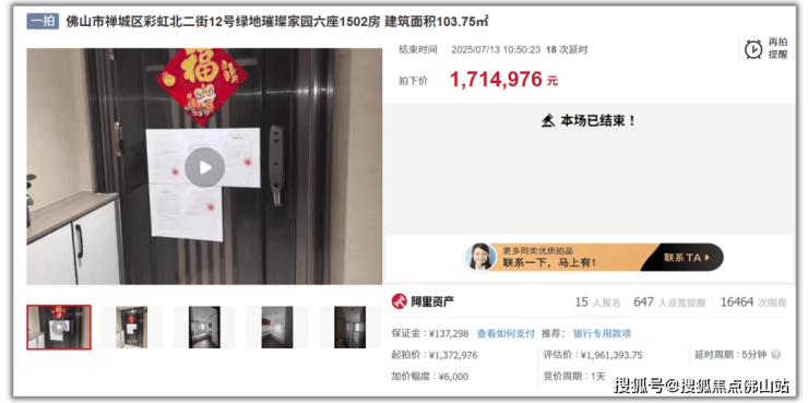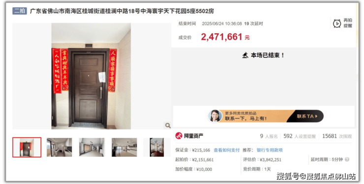 阿里拍卖平台显示,桂城街道季华七路2号怡翠玫瑰园21座1702房于7月6日成功拍出。