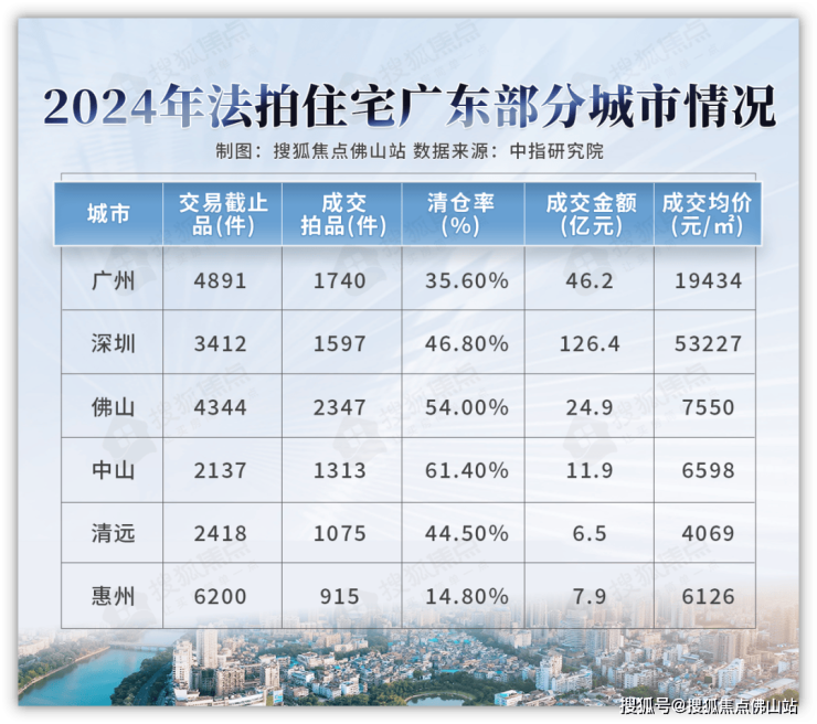 其中,佛山共挂牌法拍住宅4344套,成交2347套,成交均价为7550元/㎡。