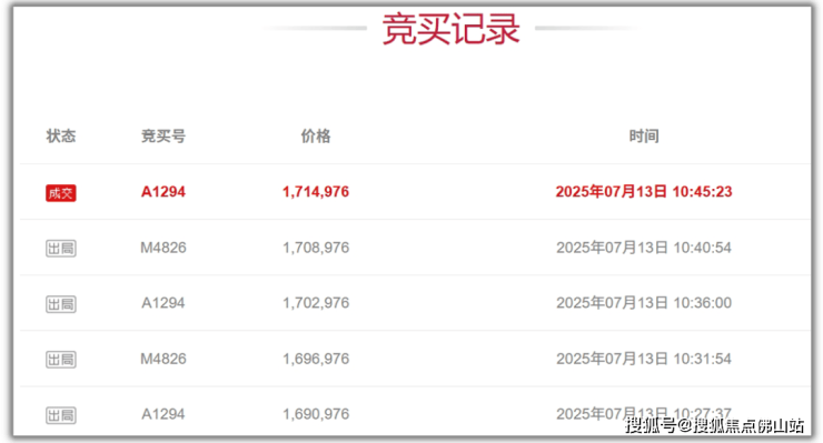 10位买家经过58轮出价后,最终由编号为A1294的竞买人以171万拿下,成交单价约1.65万/㎡。