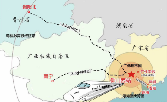 俗话说得好:路通即财通。狮山能炼成千亿大镇,除了产业优势,交通利好也必不可少。其中,作为珠三角西南地区最重要的铁路客运枢纽,也是广佛都市圈面向西南地区辐射的重要节点,去年8月佛山西站的正式开通,对位于佛山中部、地处广佛经济圈核心地带的狮山来说,可谓是最重大的交通利好。