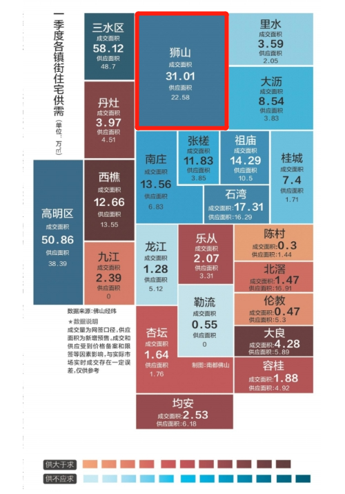 2018年排名前列季度各镇街住宅供需图(数据来源:佛山经纬)