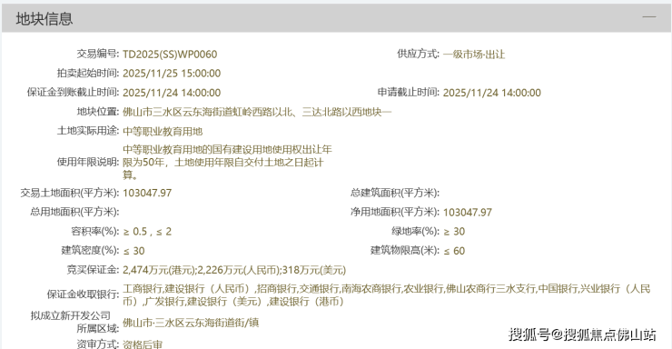 11129万起拍!三水挂牌中职教育用地,占地超10万㎡!