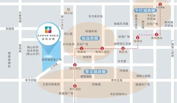 从区位来看,项目距离佛山火车站10分钟车程,邻近地铁广佛线,交通位置十分优越。项目背靠15万㎡住宅、商业、公寓综合体,半径1km范围内覆盖超15万人口,此外,与高校佛山大学仅有“一墙之隔”。