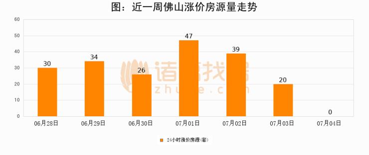 根据诸葛找房数据显示,佛山24小时涨价房源量为0套,较07月03日减少20套,环比下降100%。与此同时,涨价房源占比小幅回落,对于购房者来说是一个入市窗口期,购房者可抓住时机入市。