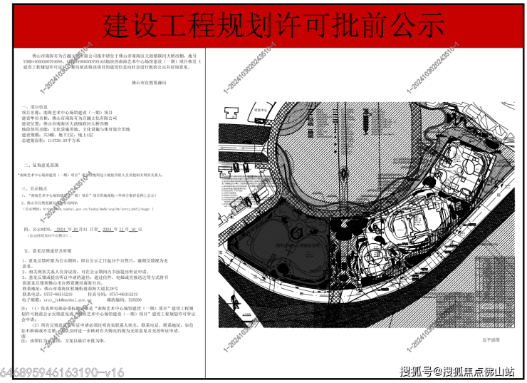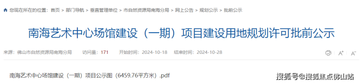 事实上,在10月底,南海区政府发布了《佛山市南海有为百越文化有限公司(南海艺术中心场馆建设(一期)项目)核发建设工程规划许可批前公示》。