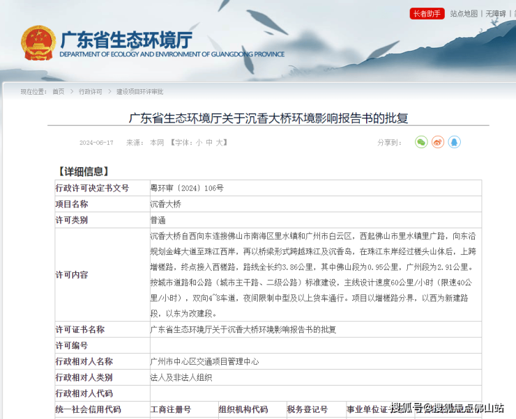 今年6月,广东省生态环境厅公布了关于沉香大桥环境影响评价听证会意见采纳情况,主要如下: