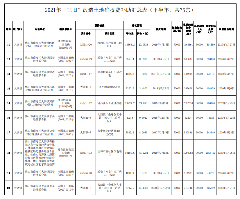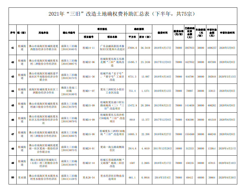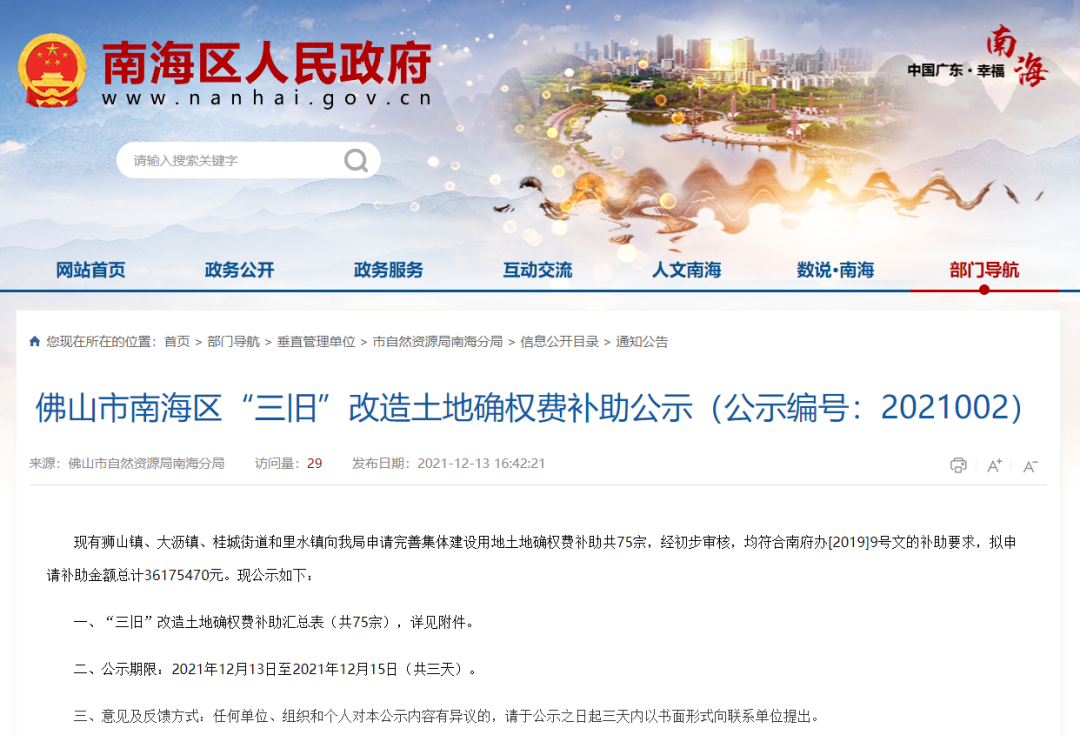 总计超3600万!南海75个旧改土地确权费补助公示!