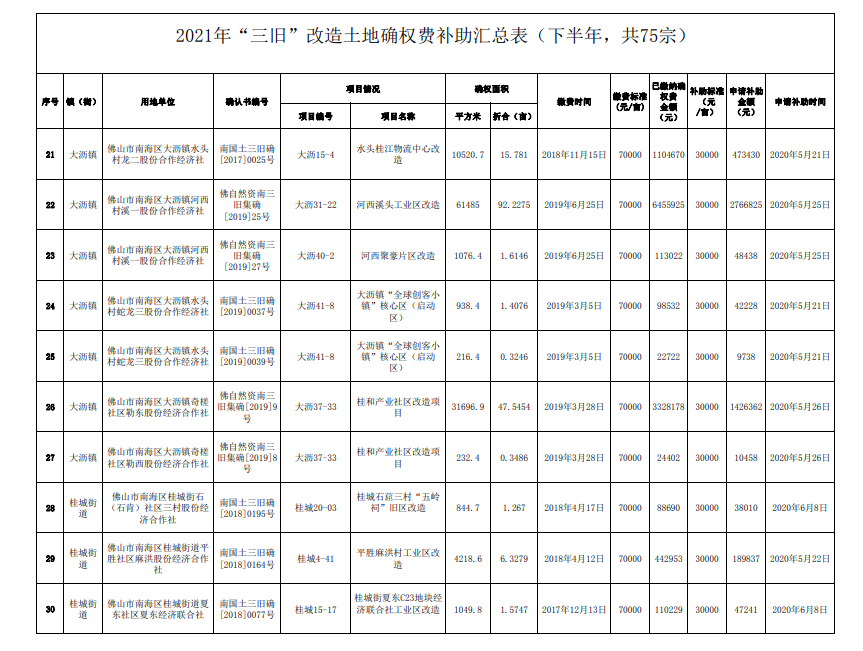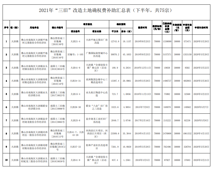 近日,小编从南海区人民政府官网获悉,2021年佛山市南海区“三旧”改造土地确权费补助正式公示!