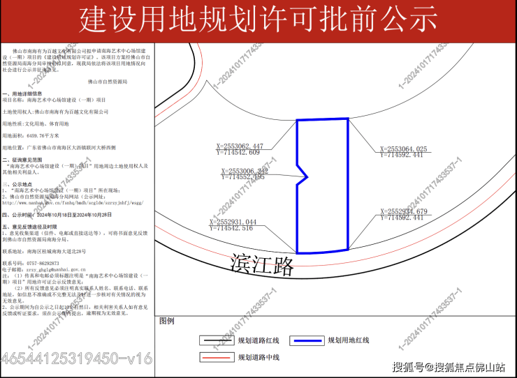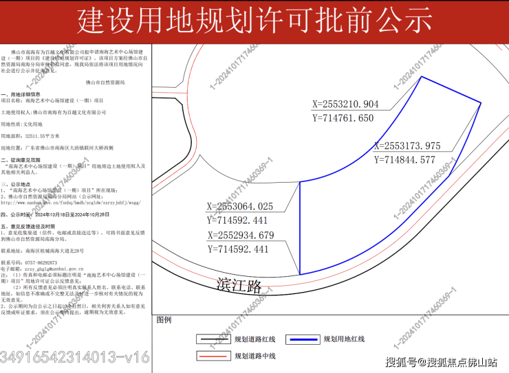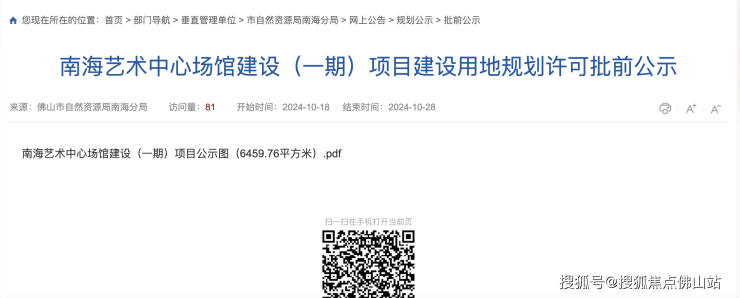《南海艺术中心场馆建设(一期)项目建设用地规划许可批前公示》