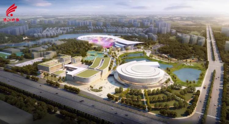 效果图,形似蜗牛壳状的建筑物为体育馆。