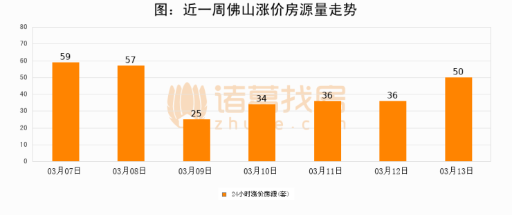 根据诸葛找房数据显示,佛山24小时涨价房源量为50套,较03月12日增加14套,环比上涨38.9%。与此同时,涨价房源占比小幅扩大,业主信心有所提升。