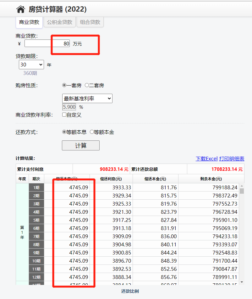 基于这个月供范围,贷款期限30年、等额本息还款为例,贷款总额差不多在80-90万左右。
