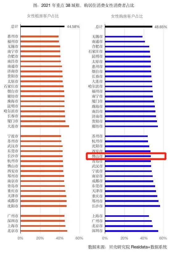小编特别注意到,佛山也在本次调查的城市范围内;粗略来看,佛山市2021女性置业占比也已达到近50%。