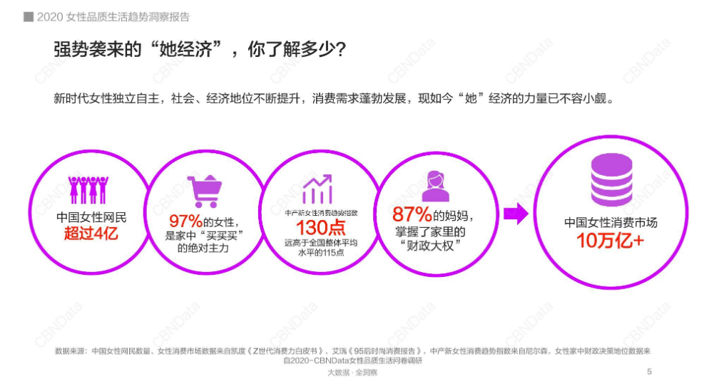 据《2020女性品质生活趋势洞察报告》显示,97%的女性在家庭消费品采购决策中占据主导。中国家庭的重大消费决策,买房或买车,大部分都是女人做的。