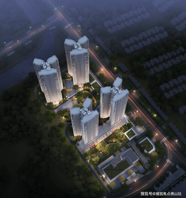 位于大良板块的顺控珺璟,采用高低配设计,由6栋高层住宅与24栋滨水商墅组成。